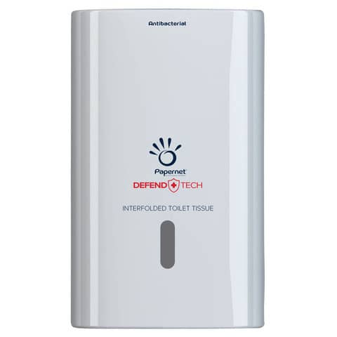 Dispenser antibatterico per carta igienica interfogliata Defend Tech - 26,5x16,5x13,5 cm Papernet Bianco