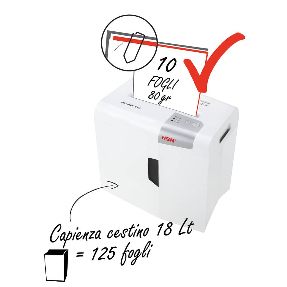 Distruggi documenti HSM a strisce Shredstar S10 - 6 mm - P-2 - 18 litri