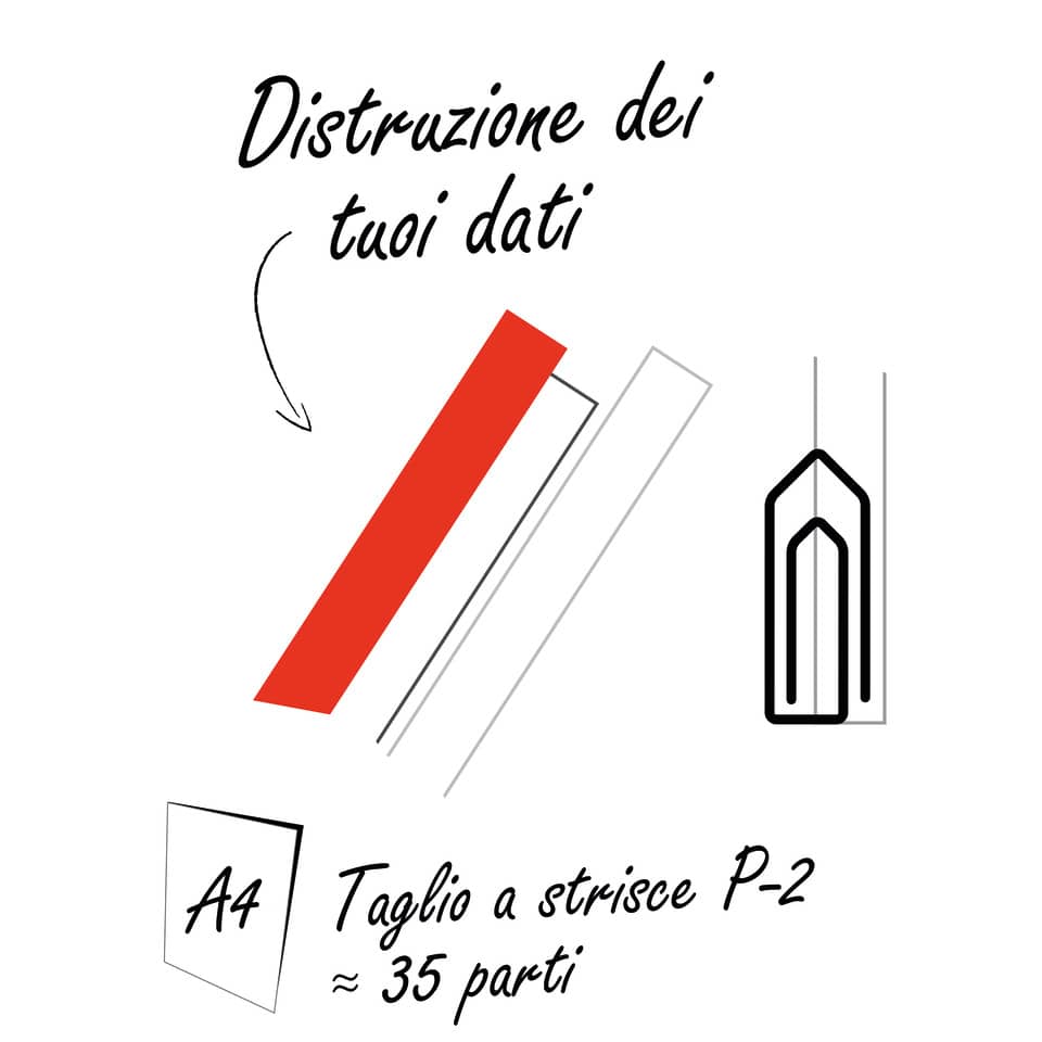 - Taglio a Strisce Sicuro: Garantisce la distruzione efficace dei documenti secondo lo standard P-2.