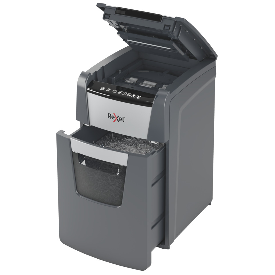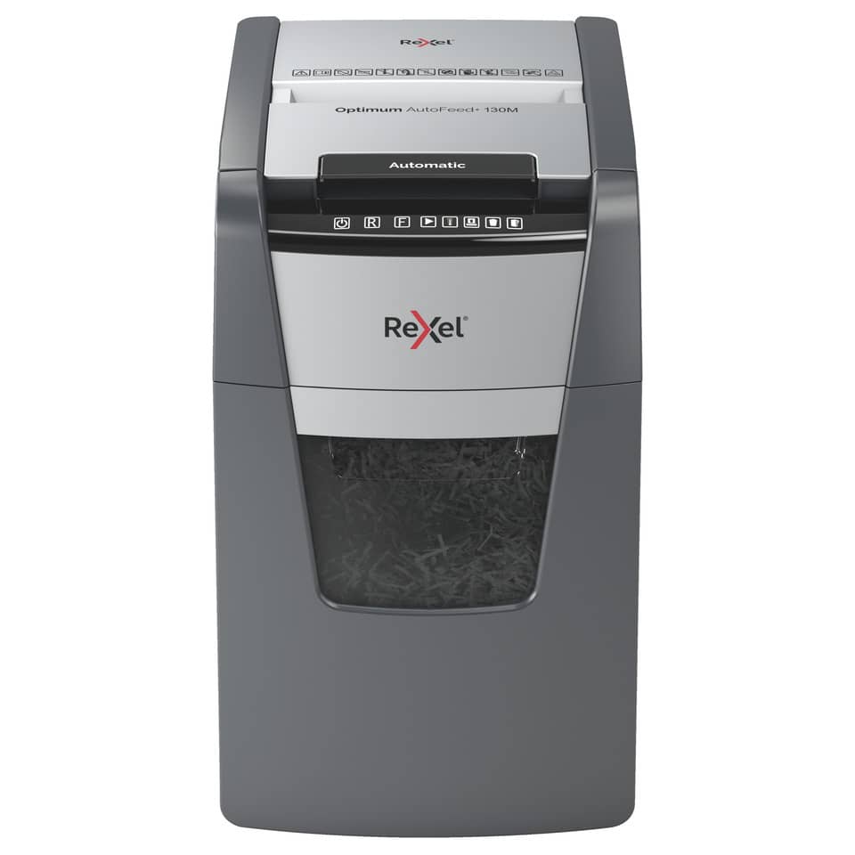 Distruggidocumenti Optimum AutoFeed+ 130M EU Rexel taglio a frammenti 2×15 mm DIN P-5 – 44 litri – Nero