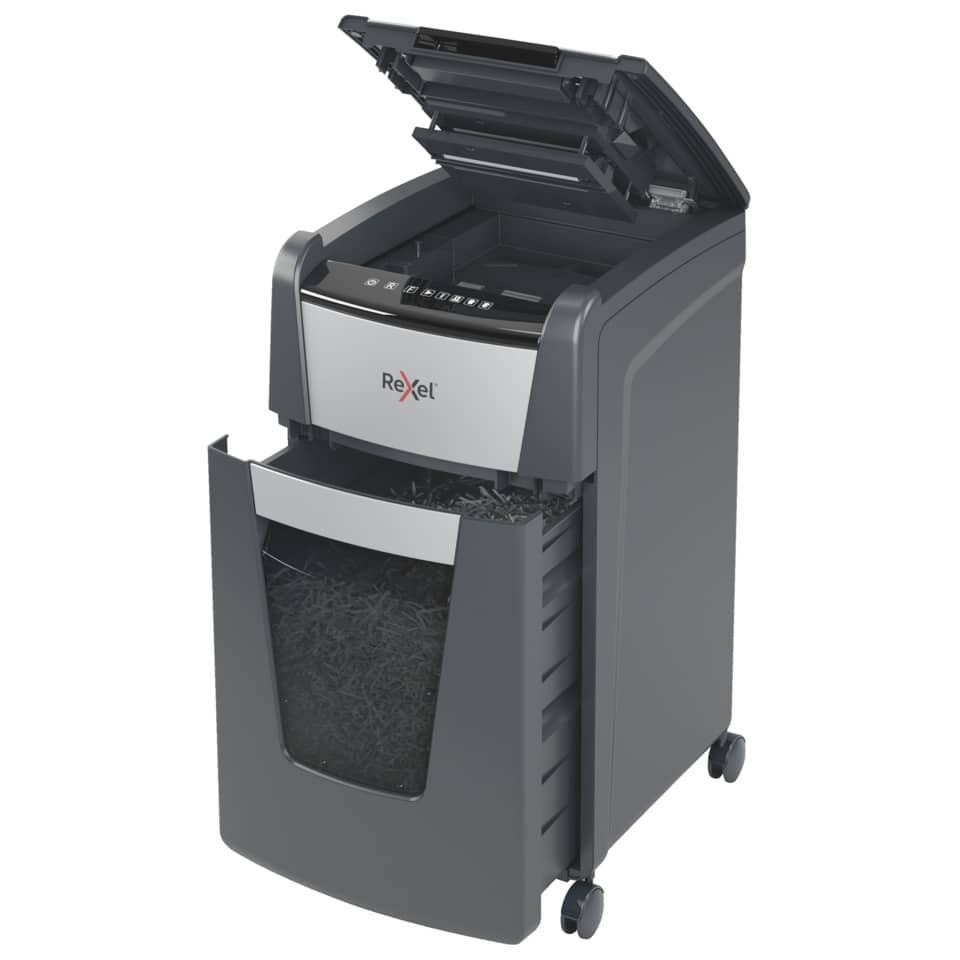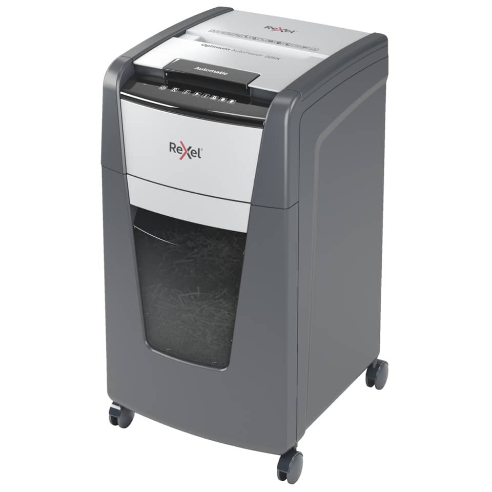 Distruggidocumenti Optimum AutoFeed+ 225X EU Rexel taglio a frammenti 4×28 mm DIN P-4 – 60 litri – Nero
