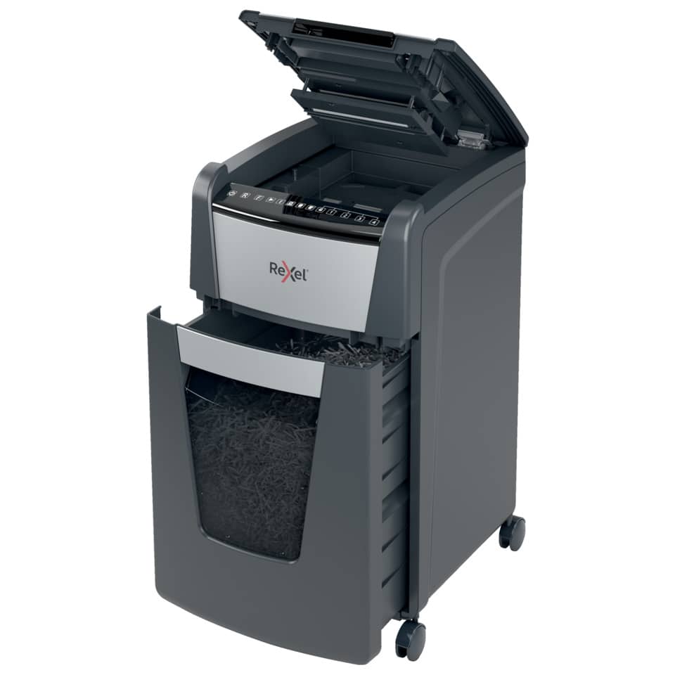 Questo potente distruggidocumenti è la soluzione ideale per chiunque necessiti di eliminare documenti in modo sicuro e efficiente, sia in ambito domestico che professionale. La sua funzionalità automatica permette di distruggere fino a 300 fogli A4 (80 g/m²) alla volta, alleggerendo notevolmente il carico di lavoro e garantendo una gestione ottimale della riservatezza. Per interventi più specifici, è possibile utilizzare l'alimentazione manuale, che consente di distruggere fino a 10 fogli. Il livello di sicurezza P-4 garantisce la distruzione di documenti in frammenti di piccole dimensioni (4x26 mm), rendendo il materiale irriconoscibile e inaccessibile a terzi. La presenza di un cestino compatto estraibile da 60 litri facilita lo svuotamento e la gestione dei rifiuti. La tecnologia integrata anti-inceppamento previene i blocchi, assicurando un flusso di lavoro continuo e senza interruzioni. Inoltre, l'articolo è in grado di distruggere con facilità carte di credito, punti metallici e graffette, eliminando la necessità di rimuoverli manualmente.Un Distruggidocumenti Avanzato per un Ambiente di Lavoro Silenzioso ed Efficiente