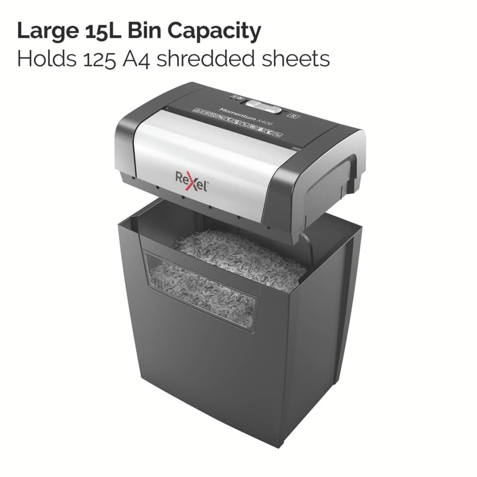 Distruggidocumenti P4 Rexel Momentum X406 taglio a frammenti 4×30 mm – 15 litri