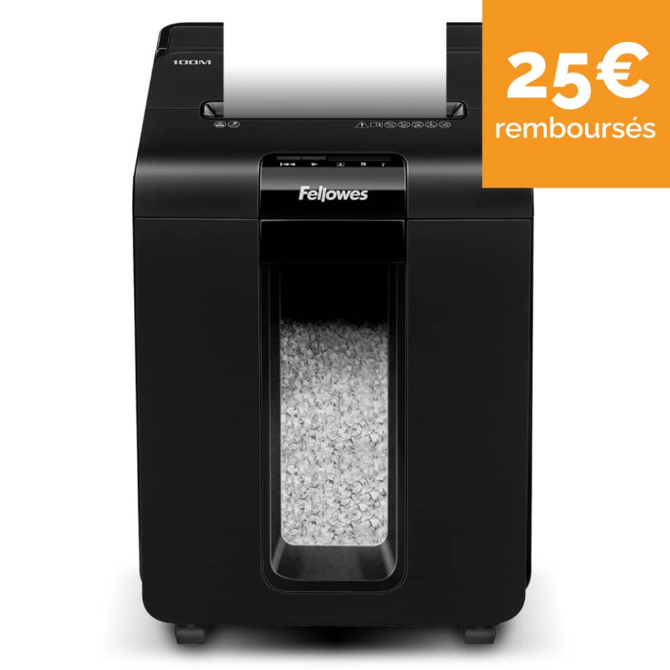 Distruggidocumenti Fellowes Automax 100M a tecnologia ibrida manuale/automatica.