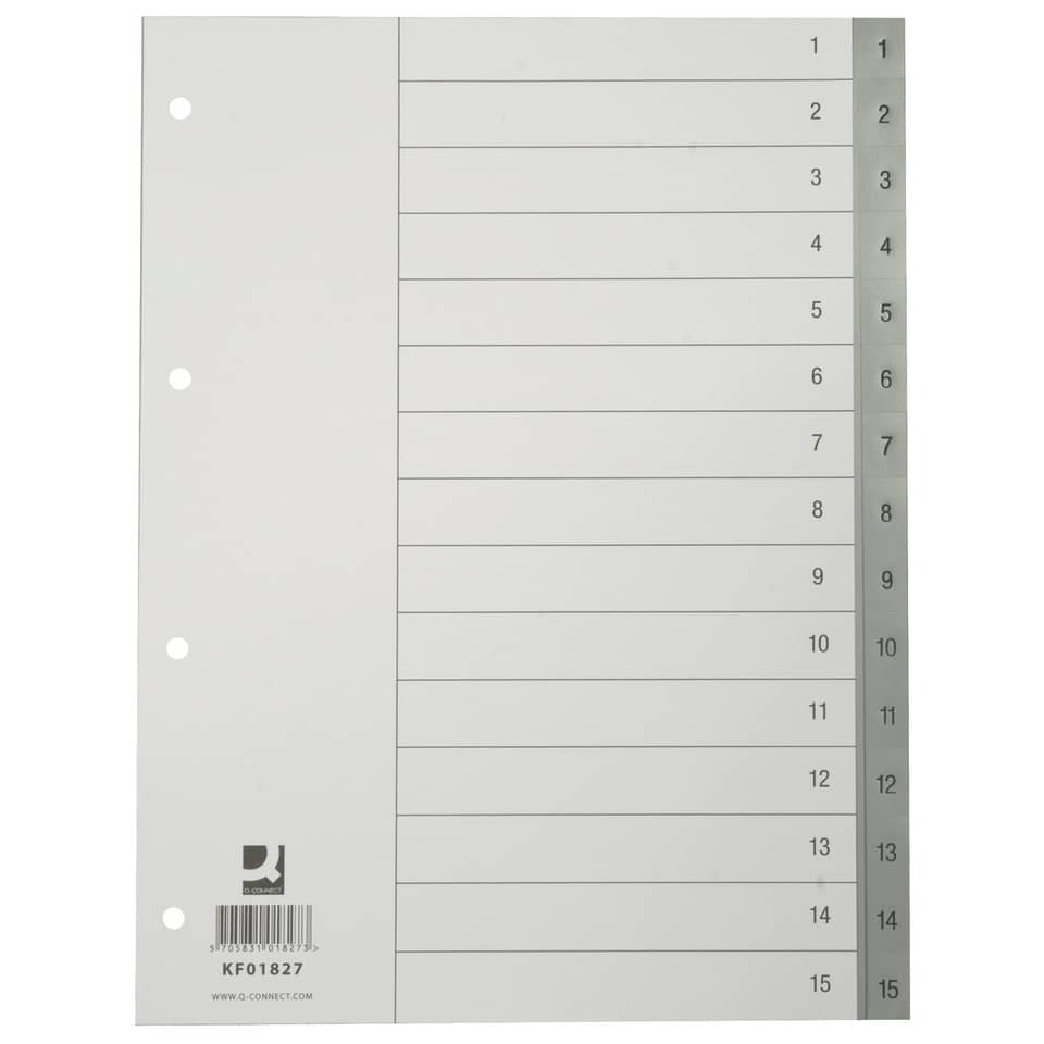 Divisore numerico Q-Connect Grigio 22,5x29,7 cm ppl 1-15