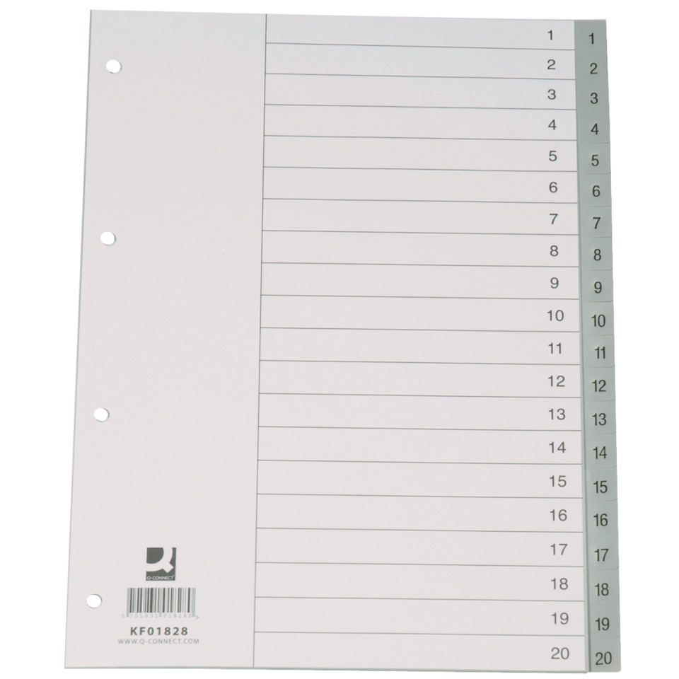 Divisore numerico Q-Connect Grigio 22,5x29,7 cm ppl 1-20