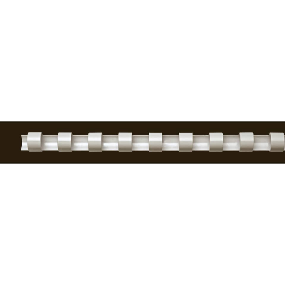 Dorsi plastici rotondi, diametro 12 mm, 21 anelli, passo 9/16" - 14,28 mm. Per rilegare dalle 56 alle 80 pagine. Colore bianco.