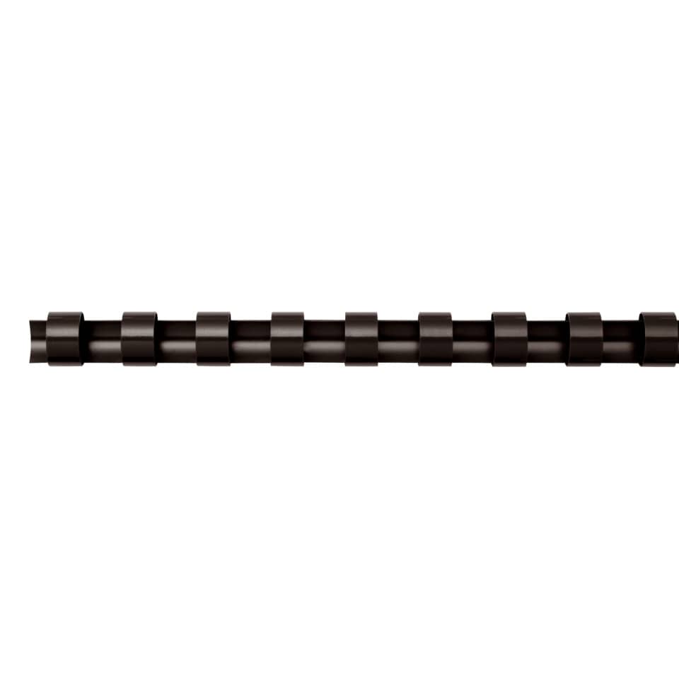 Dorsi plastici rotondi, diametro 8 mm, 21 anelli, passo 9/16" - 14,28 mm. Per rilegare dalle 21 alle 40 pagine. Colore nero.