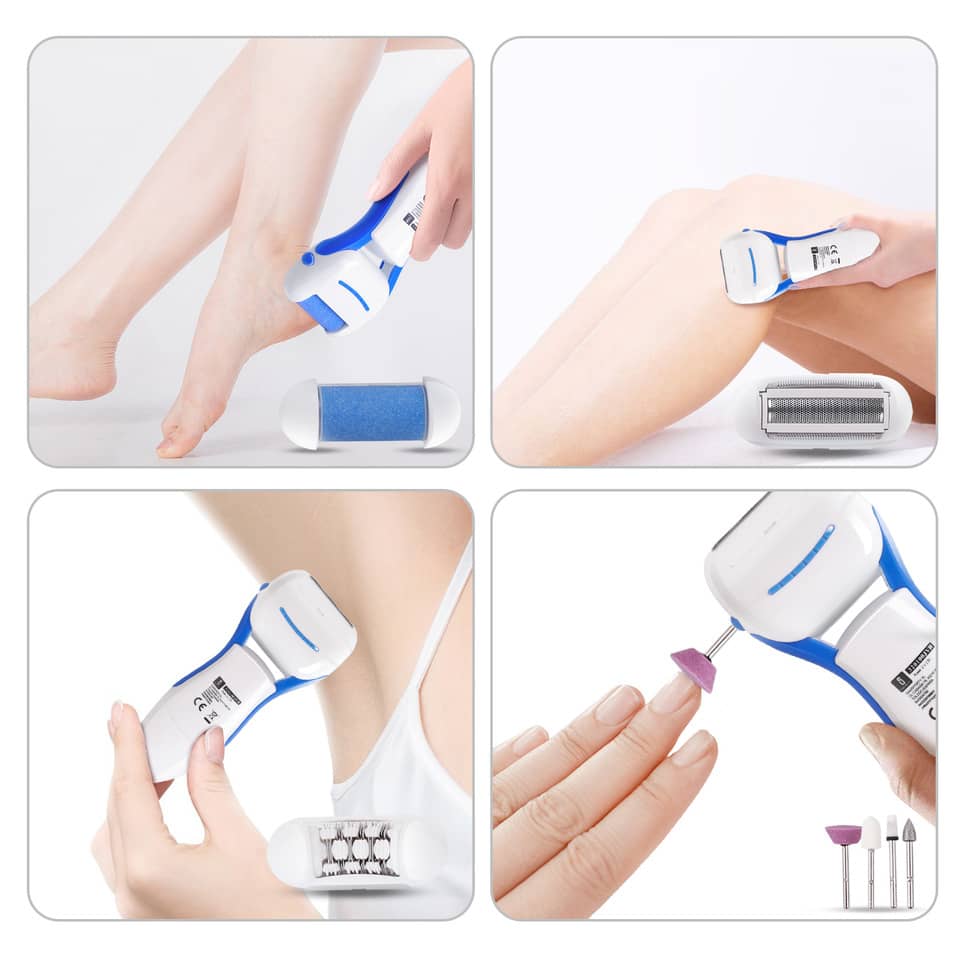 • Sistema 4 in 1: Combina epilazione, pedicure, levigazione e pulizia unghie in un unico dispositivo.