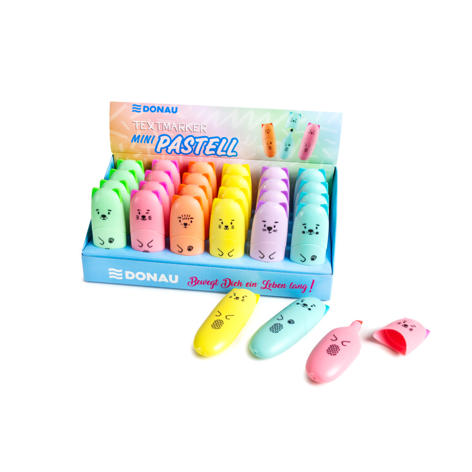 Espositore 24 mini evidenziatori Donau design animaletti tratto 1-5 mm – colori pastello assortiti – 330466924