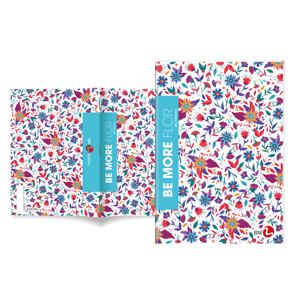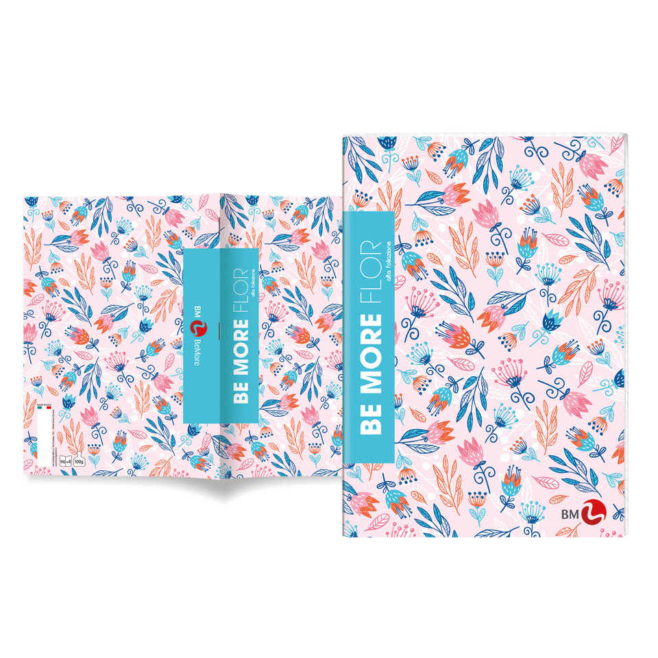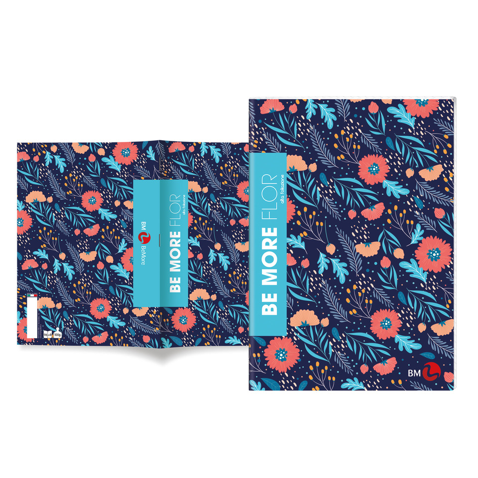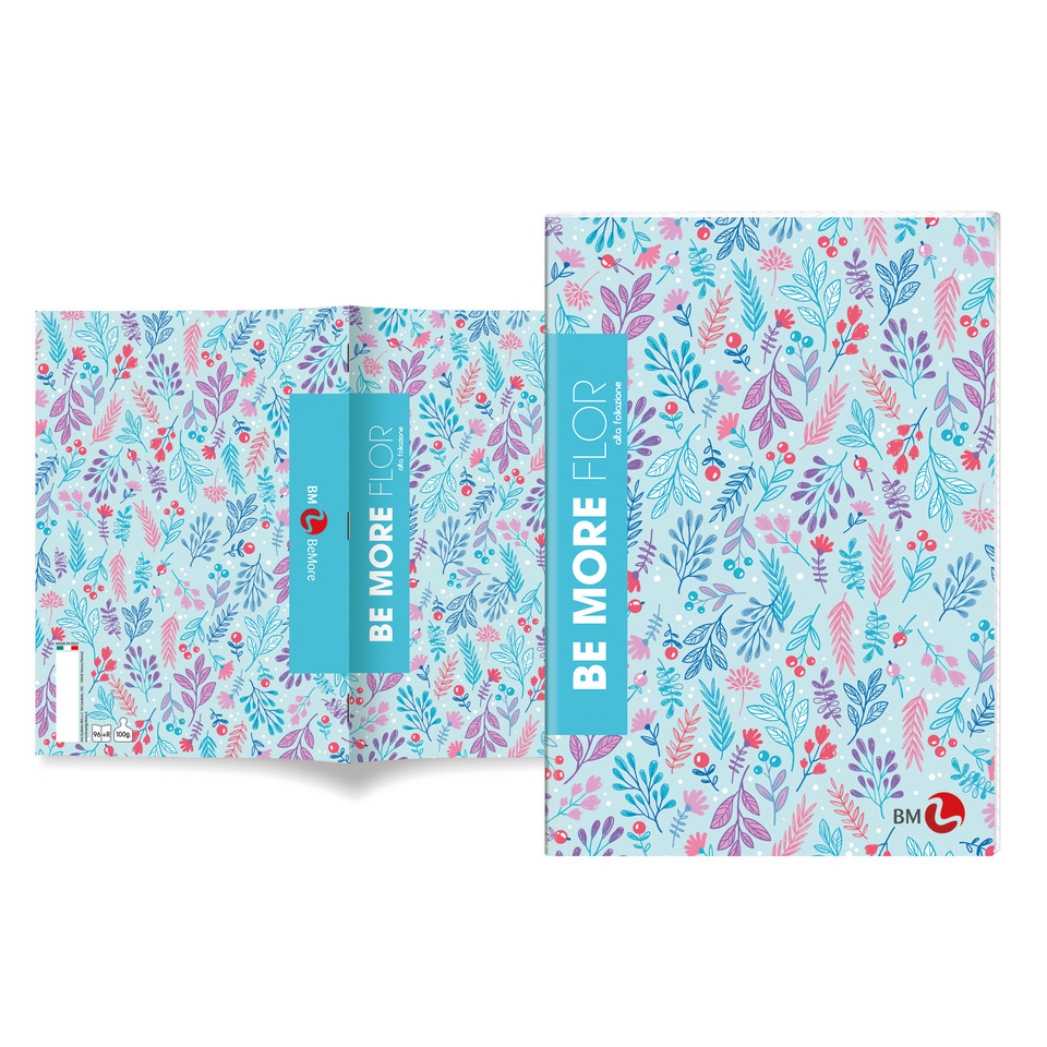 Espositore composto da 240 maxi quaderni 100 g/m² alta foliazione in plastica opaca e glitter Be More Flor. Rigature: C, 4mm, 5 mm, 1 rigo, Q. L'espositore contiene inoltre 30 raccoglitori ad anelli, formato: 27 x 32 cm; 24 cartelline a tre lembi formato A4; un mini espositore composto da 20 quaderni spiralati formato A5 e carta 80 g/m²; un espositore da 25 mini quaderni formato A6 e un mini espositore da 60 blocchi ''to do list'', formato 8 x 21 cm in carta da 80 g/m². Formato espositore: 50 x 33 cm, altezza 150 cm.