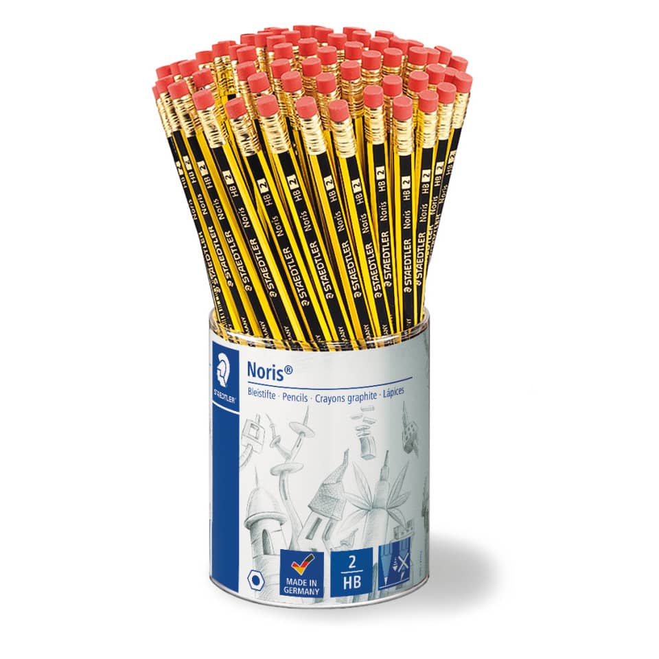 Espositore 72 matite con gommino Staedtler Noris® HB. Matita di ottima qualità con gommino. Incredibilmente resistente alla rottura grazie ad una speciale formulazione della mina e ad una solida incollatura al legno. Gomme prive di latice e PVC. Gradazione HB. Legno certificato PEFC, proveniente da foreste a gestione sostenibile. Ideale per la scuola e per l'ufficio.
