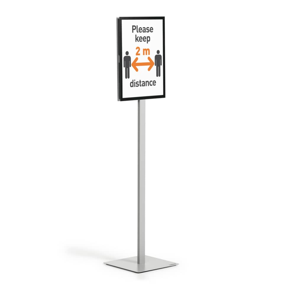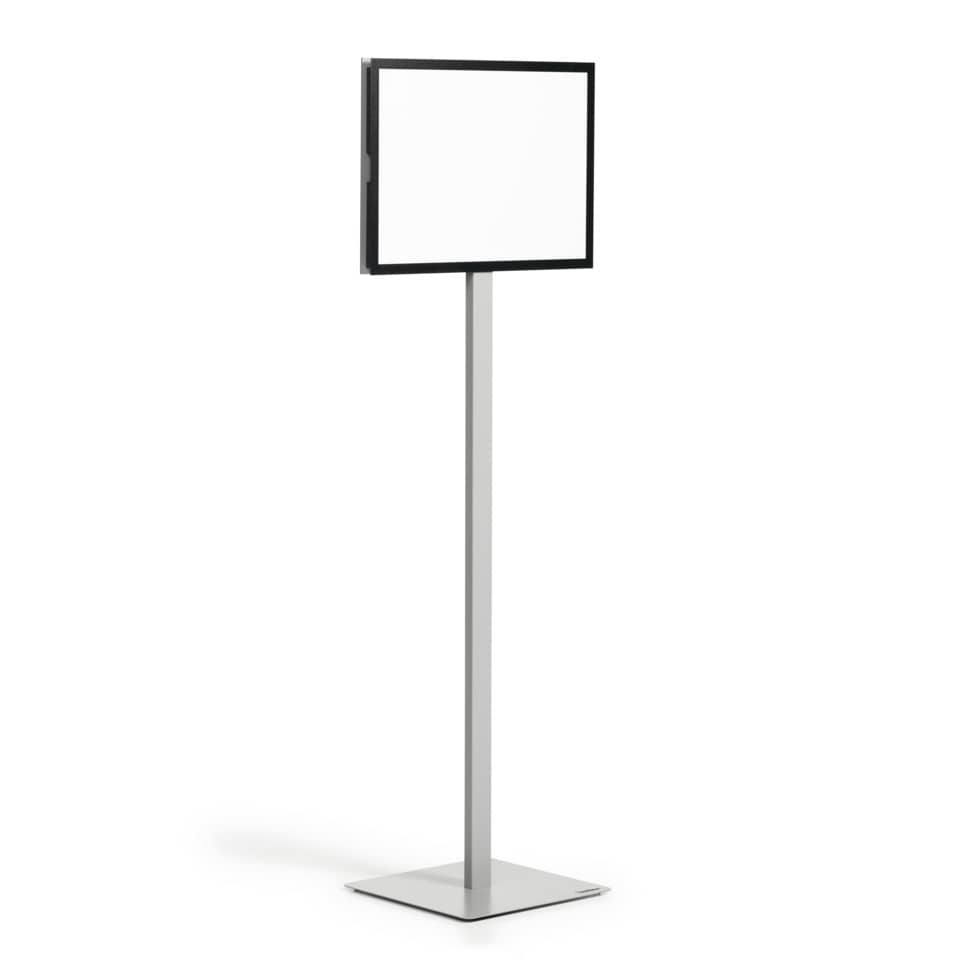 L'espositore da pavimento INFO STAND BASIC A3 è adatto sia alla presentazione di informazioni che come sistema di orientamento e guida grazie alla sua leggibilità su due lati. Facile sostituzione degli inserti grazie alle due cornici espositive magnetiche DURAFRAME® MAGNETIC incluse nella confezione, che aderiscono al pannello in metallo. Elevata stabilità garantita dallo stelo di alta qualità e dalla pesante base dotata di 4 piedini antiscivolo. L'innovativo meccanismo ad incastro permette di posizionare il pannello espositivo in orizzontale o in verticale grazie alle scanalature presenti sul lato corto e sul lato lungo, senza l'uso di minuteria. L'espositore è adatto a reception, fiere, atri e sale d'attesa. Le cornici espositive DURAFRAME® MAGNETIC di ricambio sono acquistabili separatamente in diversi colori. Template gratuiti scaricabili dal sito www.duraprint.it. Kit e istruzioni di montaggio inclusi nella confezione. Dimensioni formato verticale: 323 x 1402 x 305 mm (L x H x P). Dimensioni formato orizzontale: 446 x 1301 x 305 mm (L x H x P)
