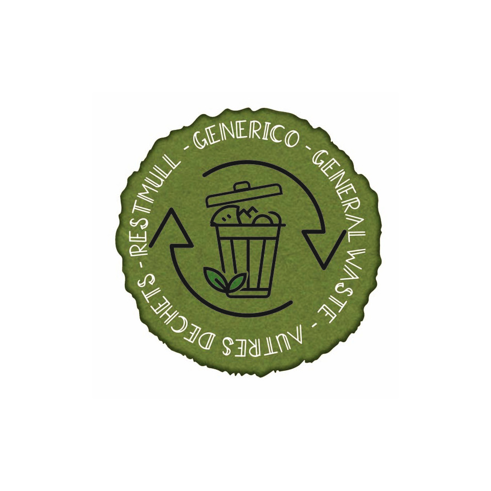 Etichette adesive pre-fustellate in vinile con icona e multilingua. Applicabili su tutti i tipi di superficie, utili per organizzare in modo efficace la raccolta differenziata. Idonee per uso interno ed esterno. Da utilizzare con i gettacarte Cardbob. Rifiuto: generico.