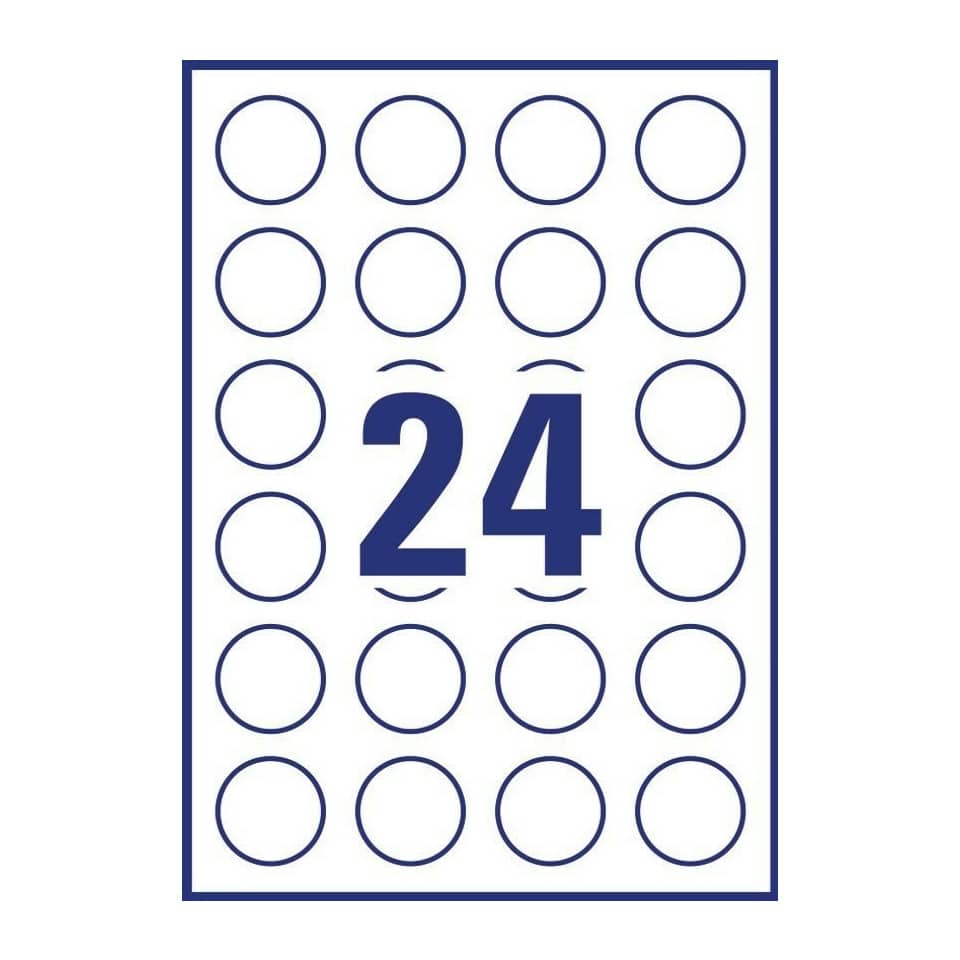 Etichette adesive rotonde rimovibili Bianche Avery Ø37 mm – stampanti laser e Ink-jet – 24 etichette per foglio – 25 fogli L4851REV-25 (600 etichette)