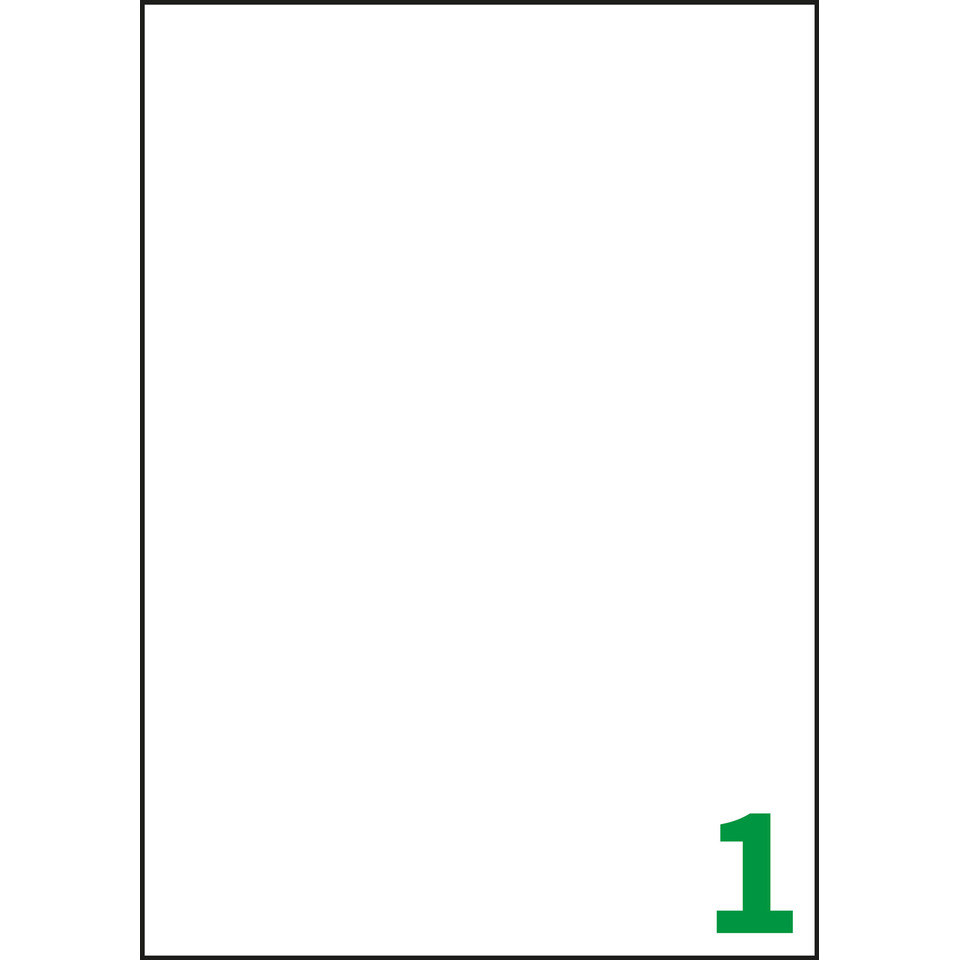Etichette bianche adesive permanenti laser/inkjet. Dimensioni: 210 x 297 mm. N°1 etichetta per foglio. Confezione da 100 +10 fogli OMAGGIO .