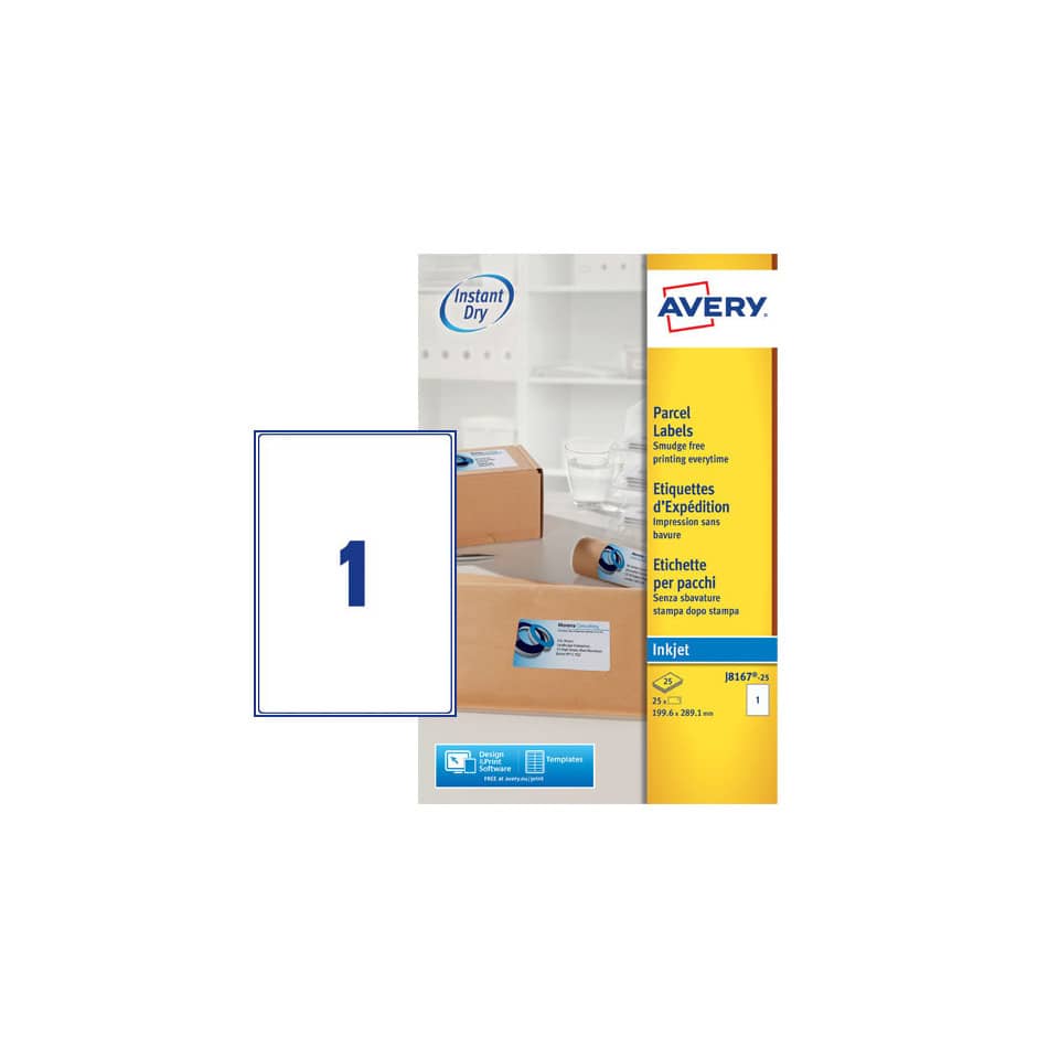 Etichette Bianche QuickDry per indirizzi Avery - 199,6x289,1 mm - 1 etichette per foglio - J8167-25 (conf.25 fogli)