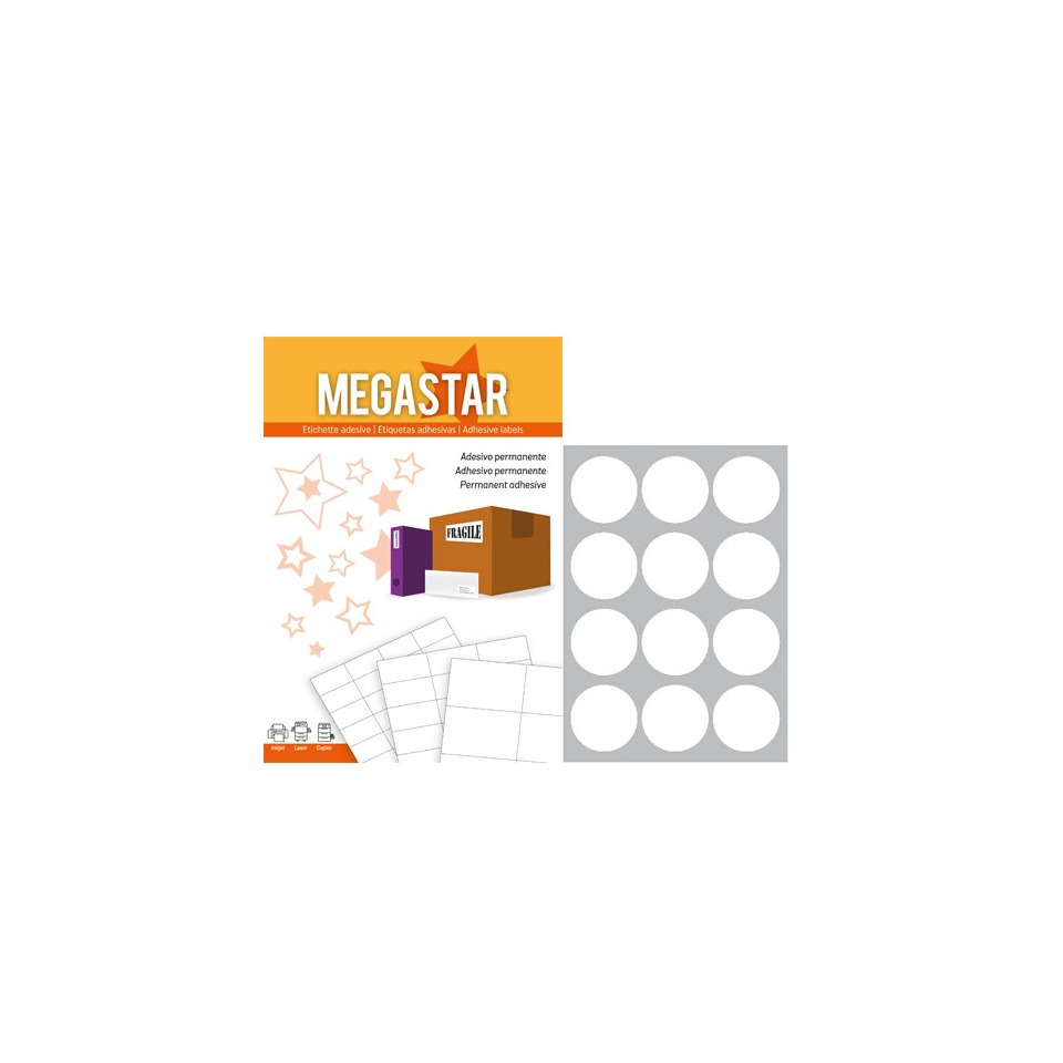 Etichette bianche rotonde con margini Megastar - 100 fogli da 12 etichette per foglio - Ø60 mm - LP4MS-60 (conf.1200 etichette)