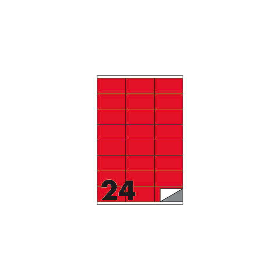 Etichette fluo permanenti Markin Copiatabu 70x36 mm in foglio A4 - 24 et./foglio rosso (conf.100 fogli)