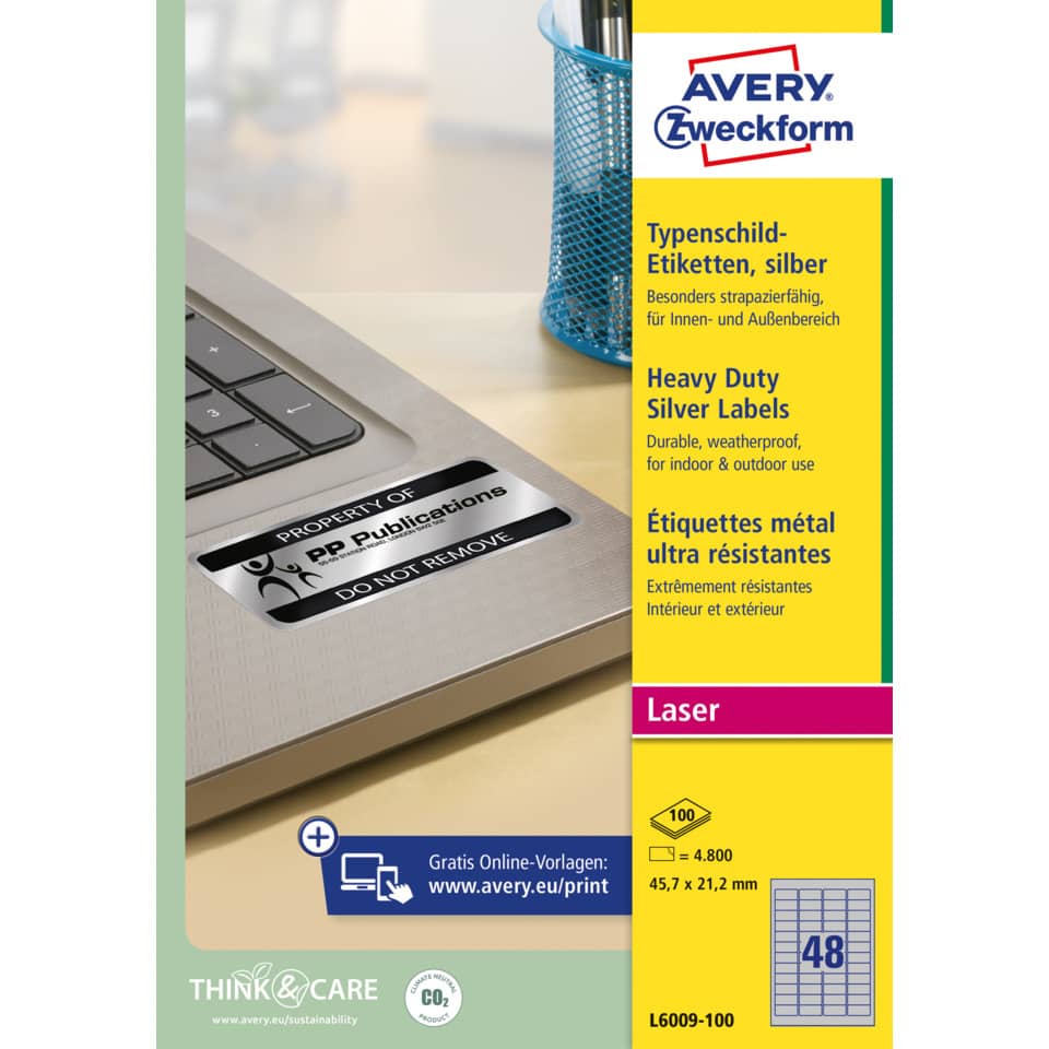 Etichette in poliestere Avery – laser – Argento – 45,7×21,2 mm – 100 fogli (4800 etichette)