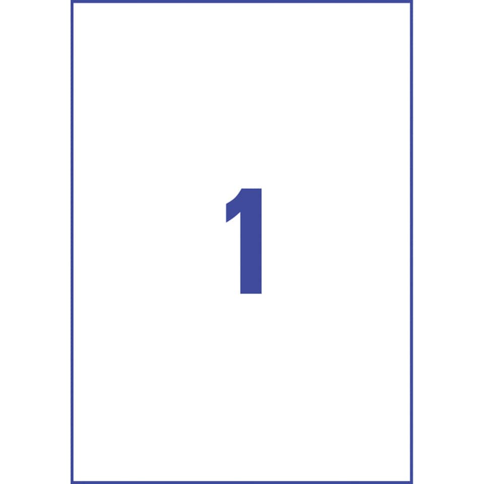 Etichette in polietilene bianco Avery 1 et./foglio Laser – 210×297 mm conf. 10 fogli – L7917-10