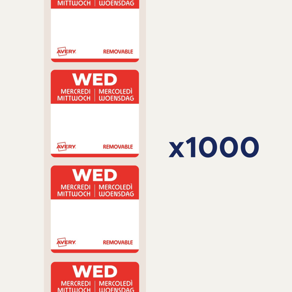 Etichette rimovibili per tracciabilità alimentare giornaliere Avery 25x25 mm - mer/rosso - DLSWEDREV-1000 (conf.1.000)