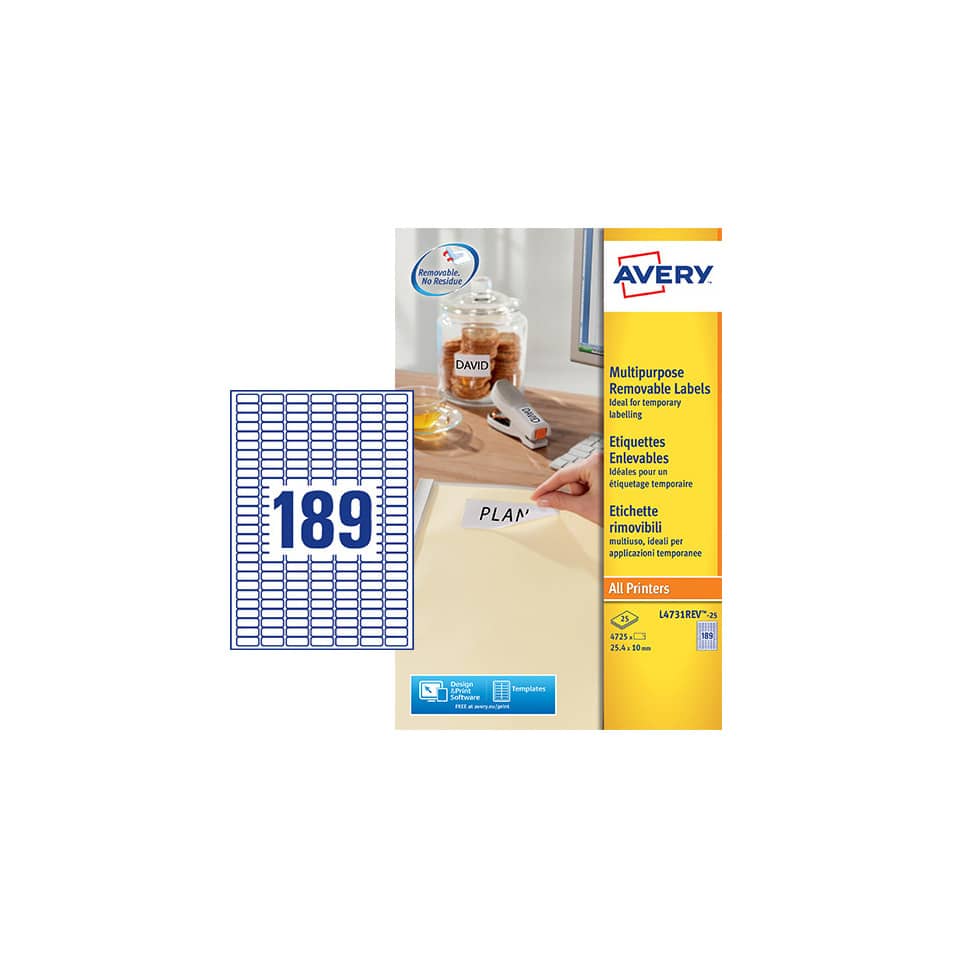 Etichette rimovibili Bianche Avery laser/inkjet - 25,4x10 mm - 25 fogli (4725 etichette)