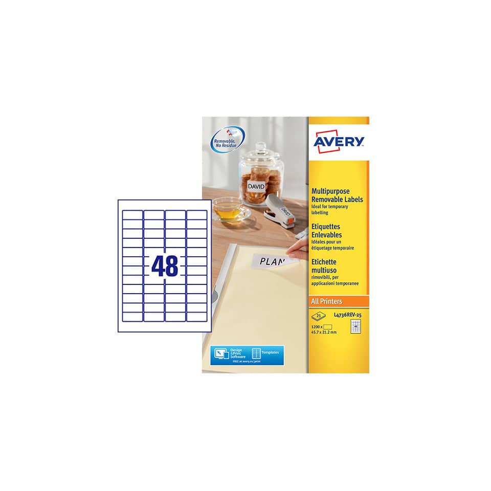 Etichette rimovibili Bianche Avery laser/inkjet – 45,7×21,2 mm – 25 fogli (1200 etichette)
