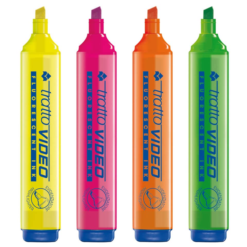 Evidenziatori Tratto Video – Giallo, Rosa, Verde, Arancione – 1- 5 mm (conf.4)