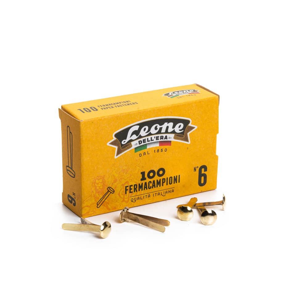 Fermacampioni Leone Dell’Era in acciaio testa bombata N.6 27 mm ottone scatola da 100 pz. – FC6