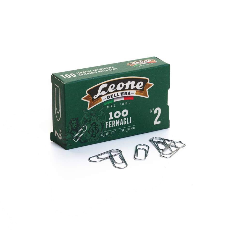 Fermagli Leone Dell’Era in acciaio zincato N. 2 0,85×26 mm triangolari zinco brillante scatola da 100 pz. – FZ2