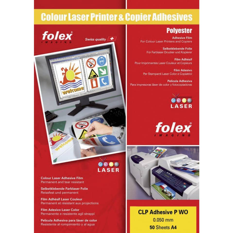 Film adesivo per stampanti laser Folex – A4 – 50µm – Trasparente lucido – CLP Adhesive P CL (conf.50)