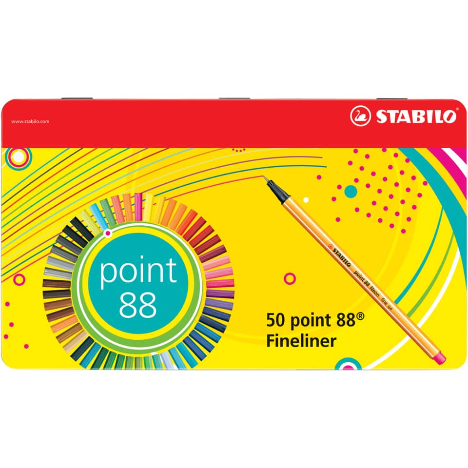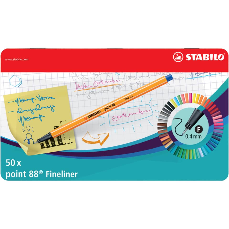 La confezione da 50 pennarelli fineliner Stabilo Point 88 0,4 mm, contenuta in un elegante scatola metallica, rappresenta la soluzione ideale per artisti, designer, studenti e per chiunque necessiti di uno strumento di scrittura e disegno preciso e versatile. Questo prodotto offre una gamma cromatica completa e una qualità superiore, garantendo un'esperienza creativa ottimale. L'eccellente pigmentazione e la punta fine permettono di realizzare tratti nitidi e definiti, perfetti per una vasta gamma di applicazioni.