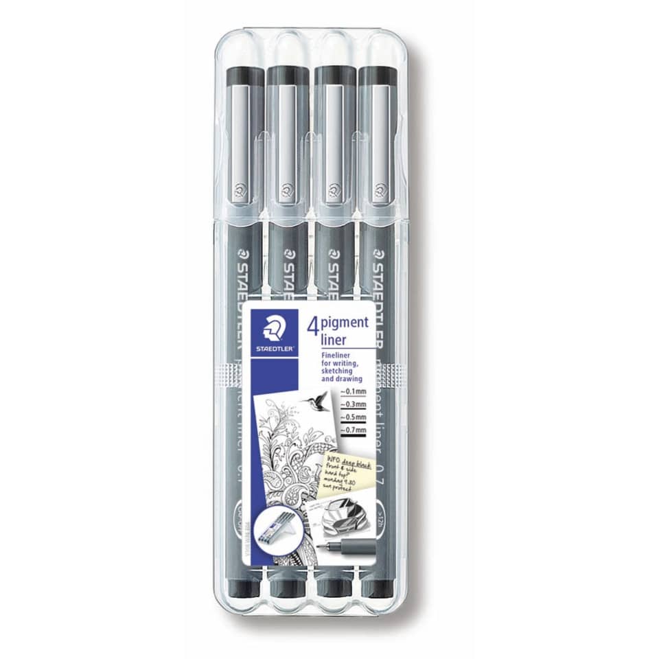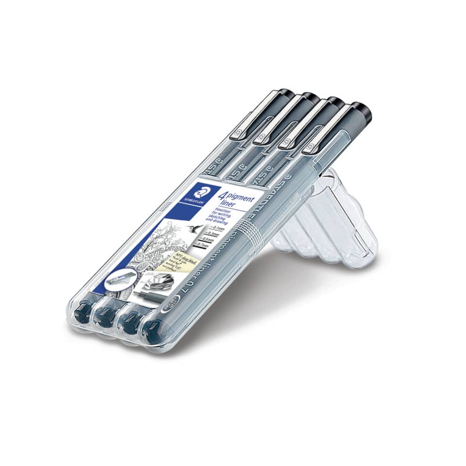 Fineliner Staedtler Pigment Liner in set da 4 misure assortite 0,1 – 0,3 – 0,5 – 0,7 mm – 308 WP4