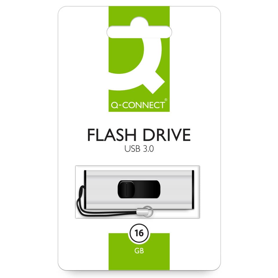 Chiavetta USB Flash Drive Q-Connect 3.0 16 GB Super Speed Argento/Nero – KF16369