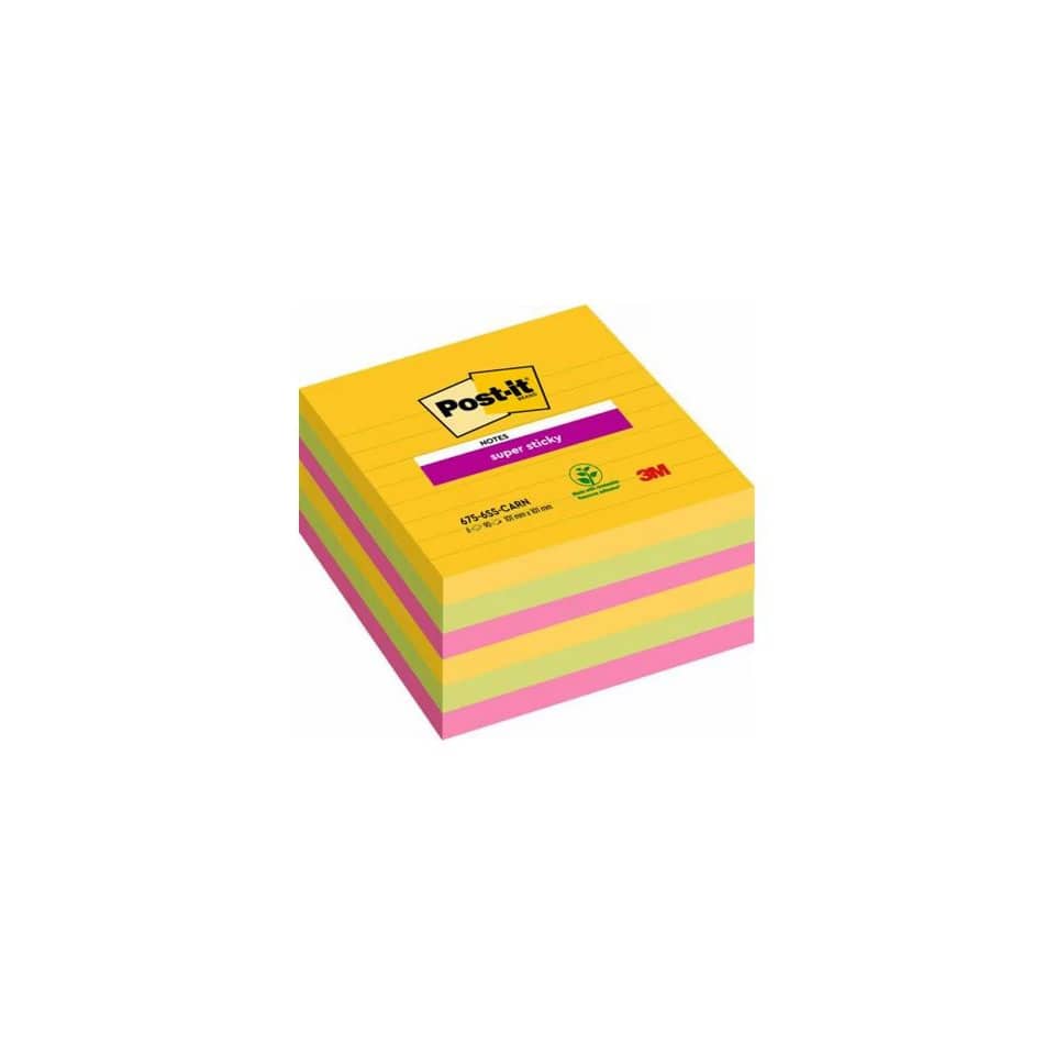 Foglietti Post-it® Super Sticky Notes a righe - Formato XL - Rio de Janeiro - 101x101 mm (conf.6 blocchetti da 90 fogli Giallo, fucsia, Blu mediterraneo)