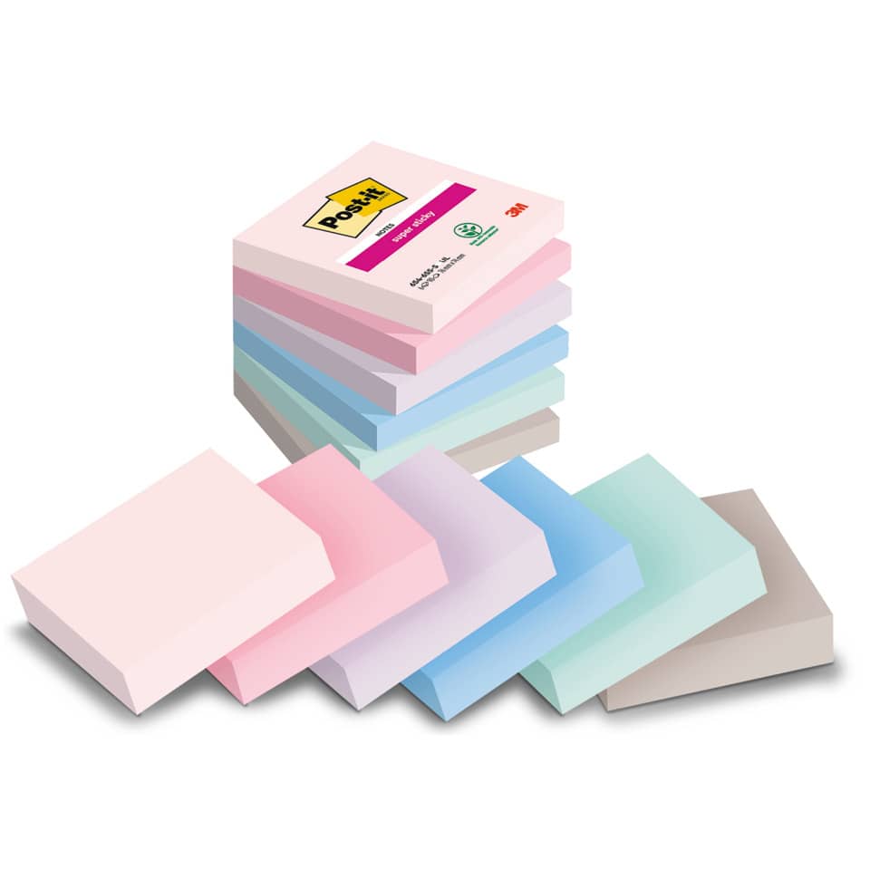 I foglietti Post-it® Super Sticky hanno un'adesione più forte e durano di più. Hanno il doppio della forza adesiva rispetto ai foglietti Post-it® tradizionali per assicurarti che il tuo messaggio raggiunga il destinatario. Perfetti per superfici verticali e di difficile aderenza, questi foglietti autoadesivi sono ideali per prendere appunti o lasciare messaggi e promemoria. Vai ovunque ti porti il tuo viaggio con i colori rilassanti e incantevoli della collezione Soulful. Sono super resistenti e super versatili e realizzati per mettere in risalto i tuoi messaggi. Realizzati con carta certificata PEFC da foreste certificate, rinnovabili e gestite responsabilmente e adesivo fabbricato al 60% con risorse rinnovabili da piante a ricrescita annuale. Formato 76x76 mm, contenuto 4 + 2 blocchetti da 90 fogli cadauno. Colori verde, rosa, viola.