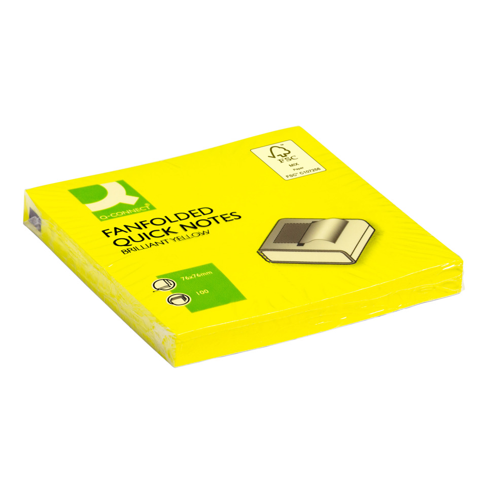 Foglietti riposizionabili a fisarmonica Q-Connect Z-Notes 70g/m² Giallo neon 76x76 mm (6 blocchetti da 100 fogli)