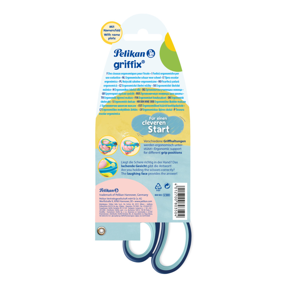 Forbici Griffix Pelikan per destrimani con punte arrotondate – 14 cm – Blu – 803502