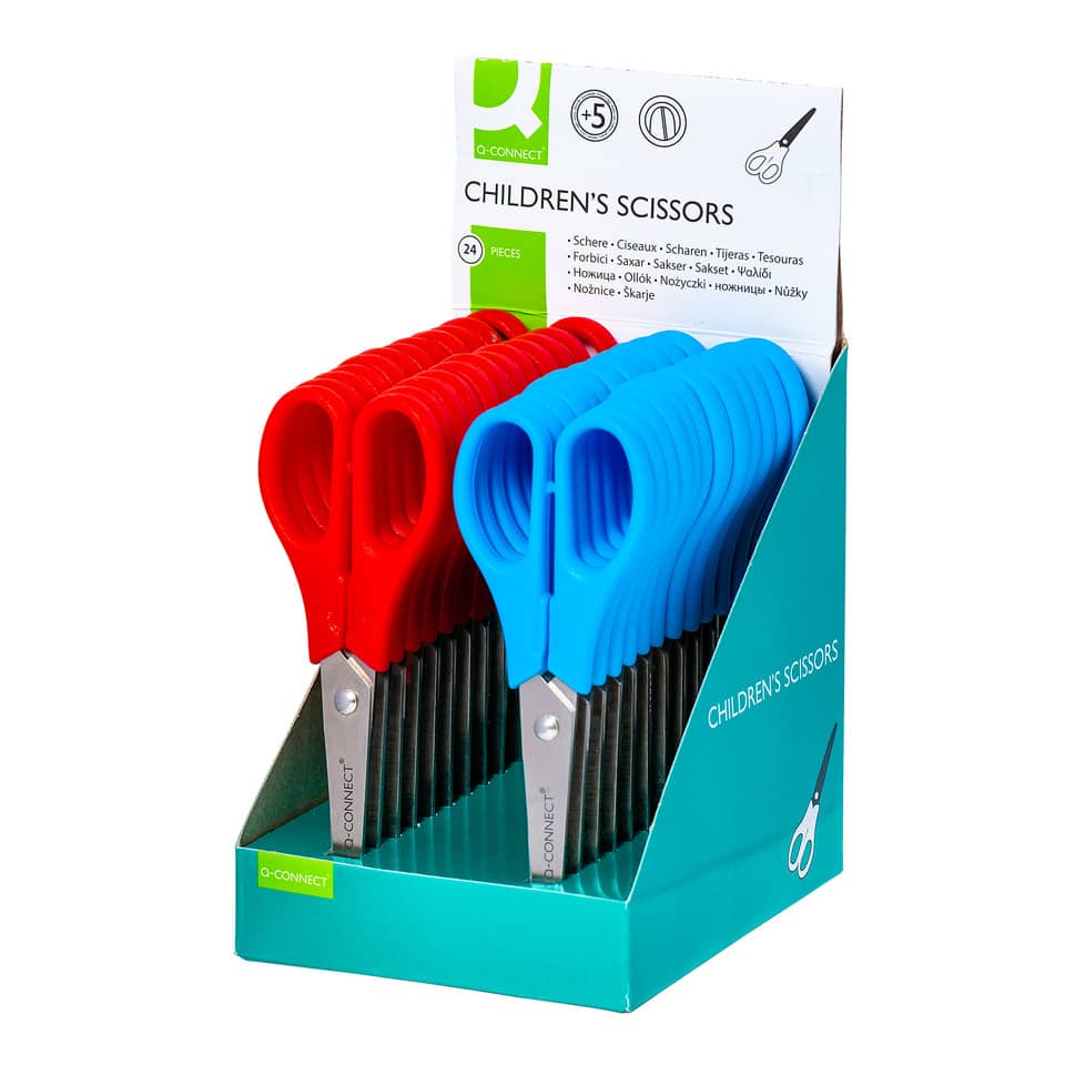 Forbici per découpage Q-Connect acciaio punta rotonda colori assortiti rosso e blu 13 cm – KF15295