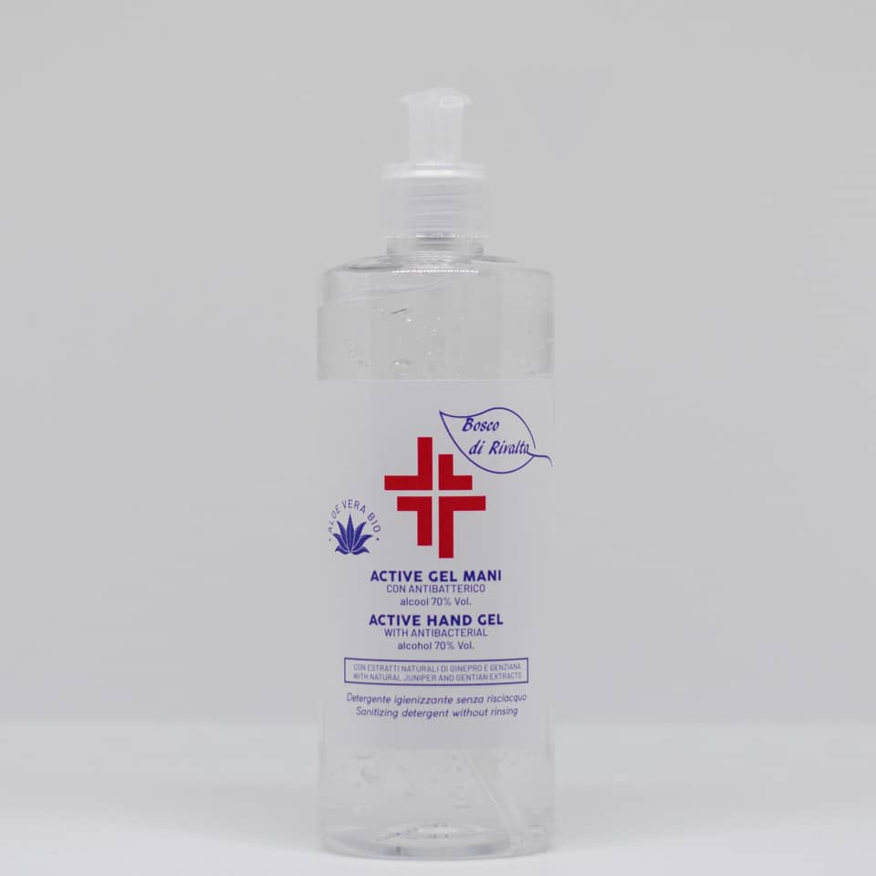 Gel igienizzante mani (alcol 70%) 500 ml con dosatore - Active linea Bosco di Rivalta - flacone Trasparente cilindrico
