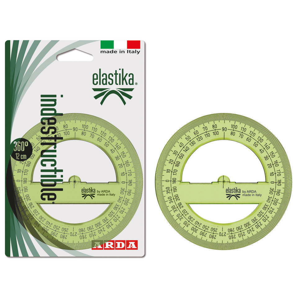 Il goniometro in plastica serie Elastika 360° e 12 cm di diametro è uno strumento versatile e preciso, ideale per misurare gli angoli. È realizzato in plastica termoresistente, che garantisce una lunga durata, e ha una graduazione incisa a caldo, che garantisce precisione e indelebilità. Il bordo esterno smussato e il bordo interno facilitano la presa e la misurazione. Inoltre, è flessibile e con memoria di forma, per una misurazione ancora più precisa.