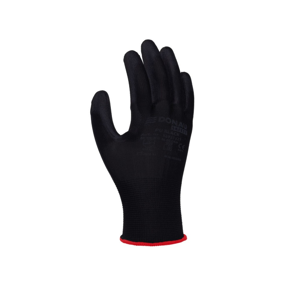 Guanti da lavoro Donau Safety in poliestere e spalmati di PU nero sul palmo – Tg. 6 – 32031221-06 (conf.12)
