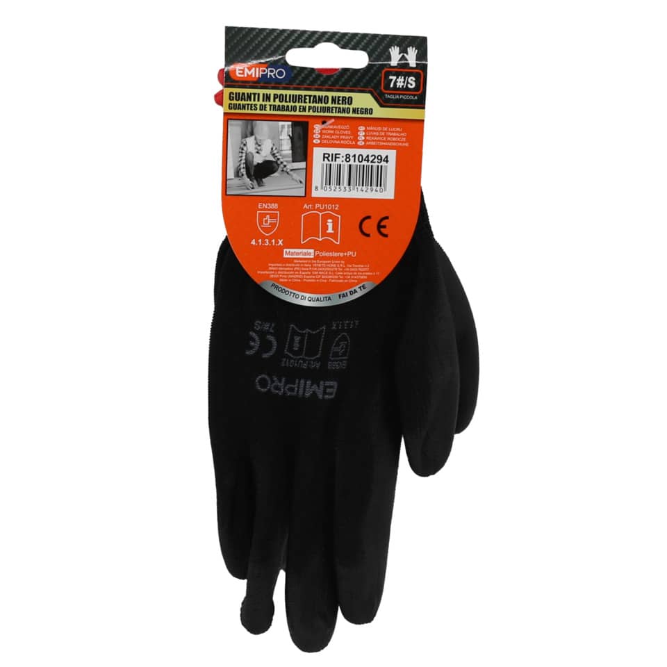 Guanti da lavoro in poliuretano Emi 7/S – Nero – EN 388 4131X – 8104294
