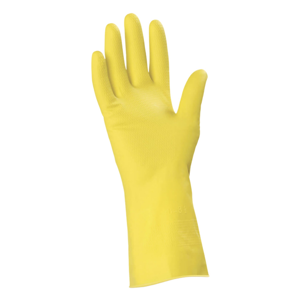 Guanti riutilizzabili realizzati in lattice naturale giallo, felpato con trattamento interno antibatterico. Hanno spessore sul palmo di 0,30 mm e sono felpati con bordino. Dotati di polsino arrotolato. Lunghezza: 30 cm. Appartengono alla categoria DPI 1, livello di sicurezza progettato per proteggere i lavoratori da rischi di bassa entità, ovvero quei rischi che non causano danni gravi o irreversibili, sono conformi alla normativa di base di sicurezza. Taglia: M.
