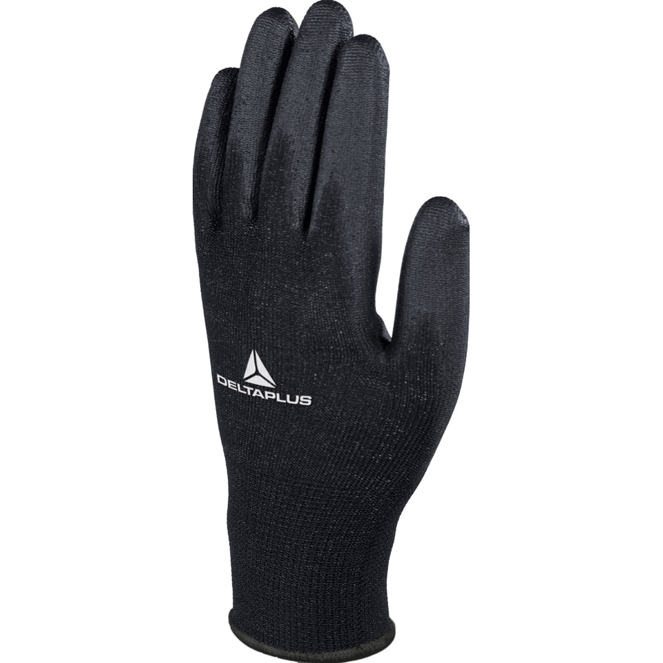 Guanto da lavoro Delta Plus in maglia di poliestere con palmo in poliuretano Nero taglia 7 - VE702PN07 (conf.12 pezzi )