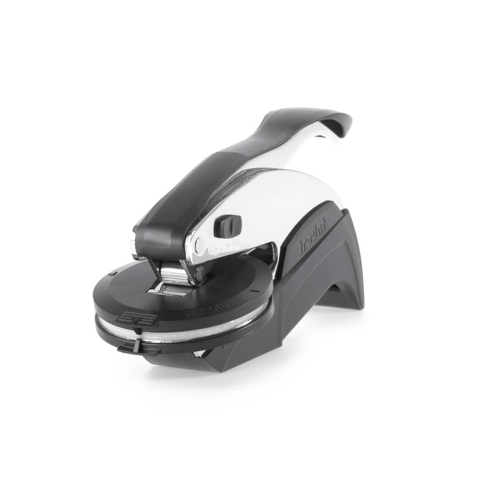 Timbro personalizzato TRODAT IDEAL SEAL 970051/LS CROMO Ø51 mm INCL. BORSA DELUXE con testo. Personalizzazione dell'impronta disponibile nel colore NERO. Ergonomico e leggero. Timbratura con il minimo sforzo.