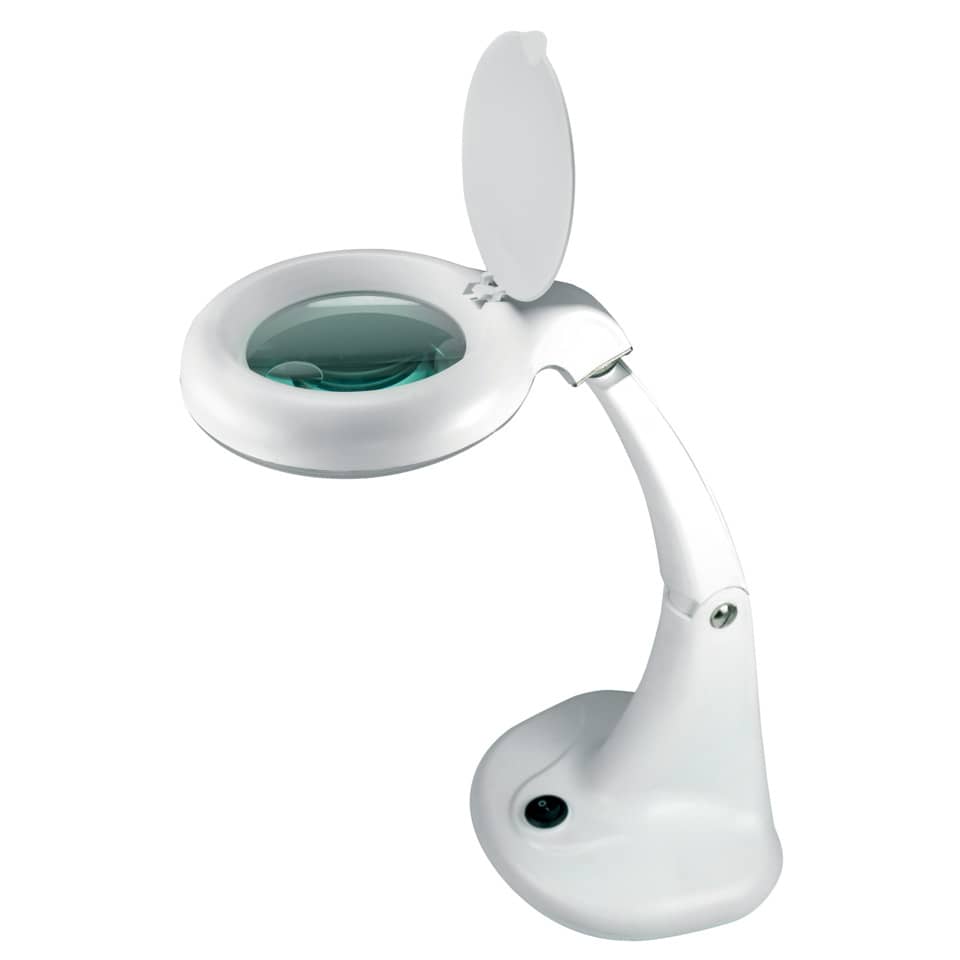 Lampada mini zoom led 5w con lente di ingrandimento unilux è molto versatile, adatta sia per l'utilizzo hobbistico che professionale: artigianato, modellismo, riparazioni di elettronica, ottica. il braccio ha doppia articolazione e la calotta è orientabile in tutte le direzioni .e' fornita di lenti da 3 diottrie (ingrandimenti 1.75x) senza distorsioni sui lati e lenti da 12 diottrie (ingrandimenti 7x) per uno zoom ottimale. il led da 5w diffonde una luce bianca ideale per un miglior focus sui dettagli.