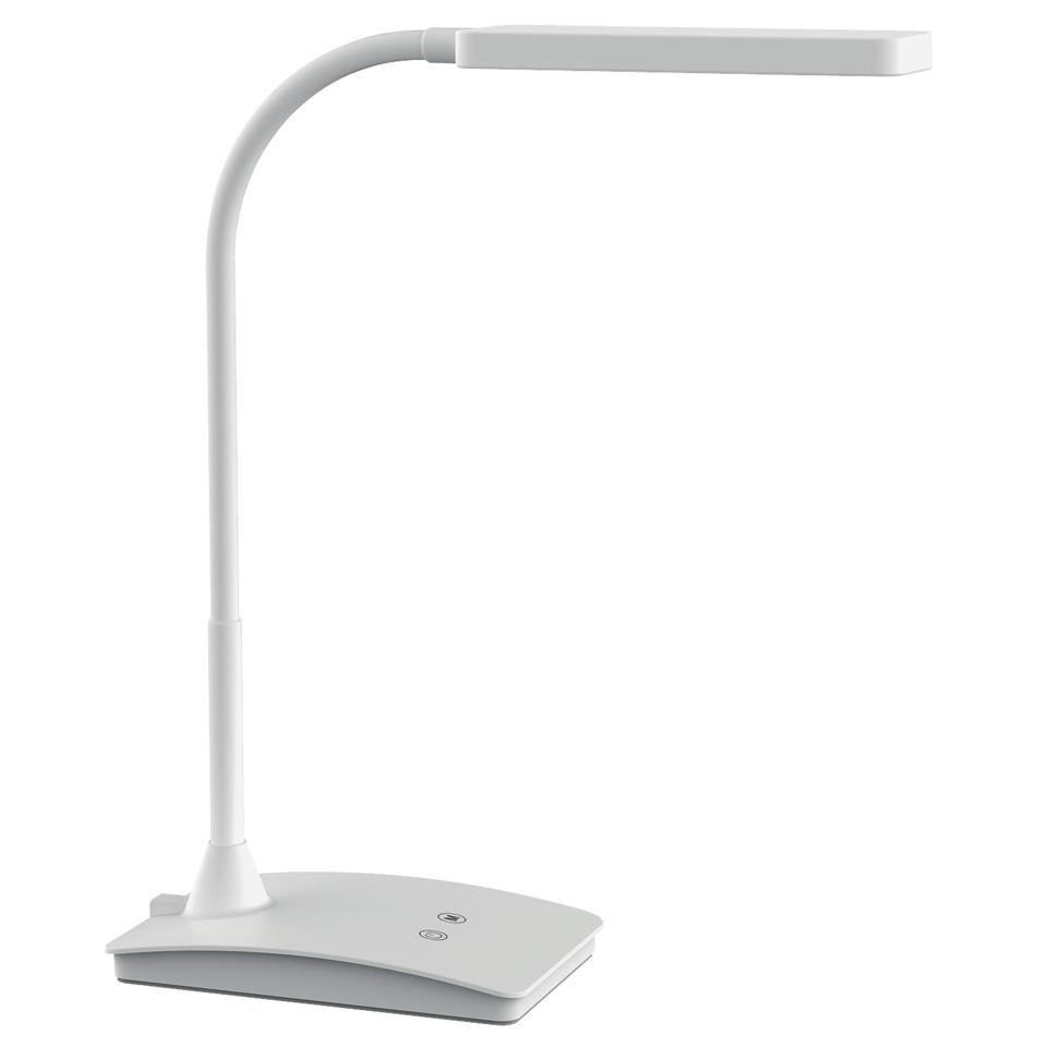 Lampada da tavolo, la più potente tra le compatte. Regolazione temperatura di colore e intensità di illuminazione su tre livelli, a seconda dell'ora del giorno oppure delle proprie esigenze. Buona illuminazione di un'area limitata con forte luce. Estremamente parsimoniosa: i LED consumano l'80% in meno rispetto ad una lampada a incandescenza. Poco ingombrante e maneggevole. Pratica: braccio robusto con sezione flessibile per la regolazione dell'angolo d'illuminazione. Concetto di sicurezza tecnica Made by MAUL. . Con 24 LED: 8 a luce calda (3.000 kelvin) e 16 a luce diurna (6.500 kelvin). Questo dispositivo è munito di lampade LED integrate, non sostituibili. Durata del LED 20.000 ore. Classe di consumo energetico "A" (fascia di classe energetica A++ a E). Consumo energetico estremamente basso di ca. 6 watt. Consumo annuo ponderato di energia: 6 kWh/1.000 ore. Luminosità 1.360 lux a 35 cm di distanza, 320 lumen. Braccio in metallo con superficie gommata, testa in materiale plastico. Lunghezza braccio 35,7 cm. Altezza in posizione normale di lavoro 36 cm. Dim. Testa 16 x 6 cm, inclinabile e ruotabile. Interruttore a sfioramento posizionato sulla base, comodo da azionare. Base stabile, 16,5 x 10,6 cm, in materiale plastico, con zavorra interna e superficie inferiore antigraffio. Confezione sicura, a basso impatto ambientale, riciclabile.