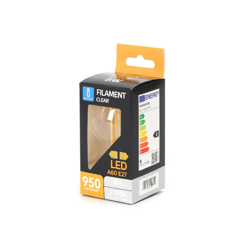 Lampadina a filamento LED luce calda 8W A60 – E27 – 470 lumen Aigostar Ø60xh.105mm – B10106AM0